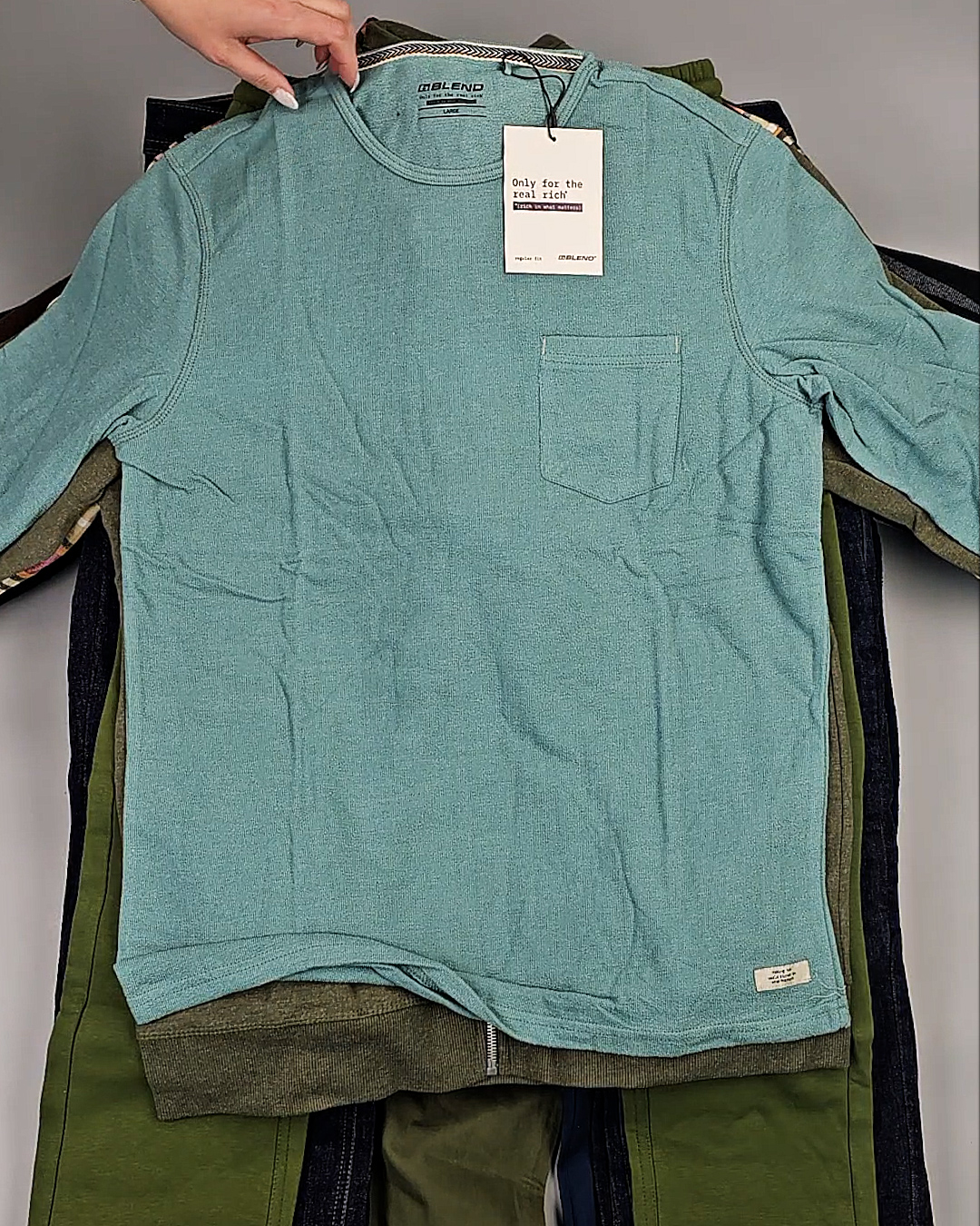 В мешке представлен мужской ассортимент - это продукция актуальных европейских брендов высокого качества. Отлично подойдет для закупки если целевым сезоном продаж является зима.